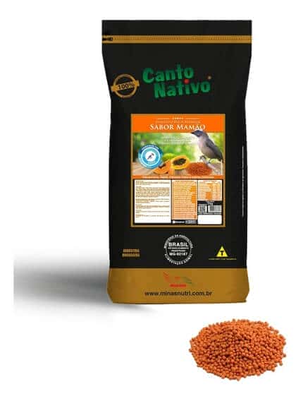 Canto Nativo Mamão é um alimento High Premium, extrusado e balanceado com um delicioso sabor de mamão. Formulado especialmente para a nutrição Trinca ferros, sabiás, tangarás, saíras e outros frugívoros de pequeno porte.